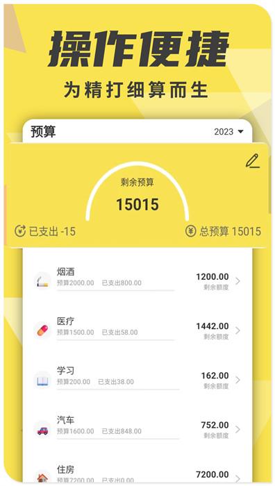 2、可以为每一个分类设置自己的预算,帮助用户更好的规划和管理自己的财务;