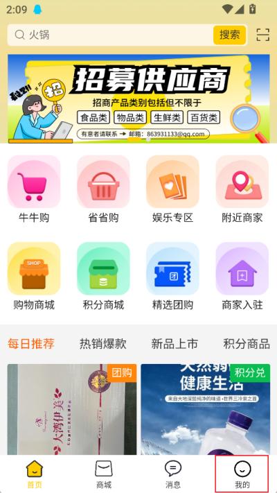 1、首先打开下载好的牛牛生活app,进入软件后点击界面右下方【我的】选项;