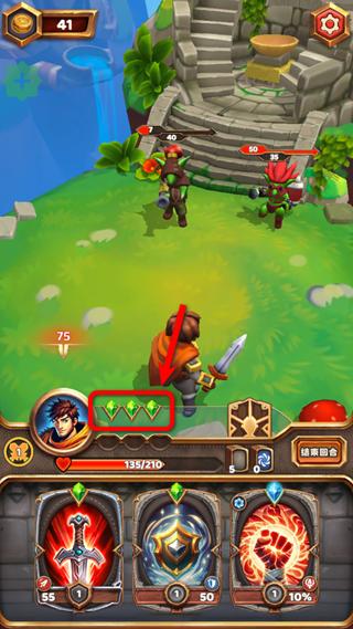 4.这个绿色的石头就是你的回合数,一块石头代表一次攻击机会,卡牌上有绿石头标志的就是需要耗费绿色石头的。
